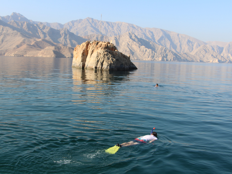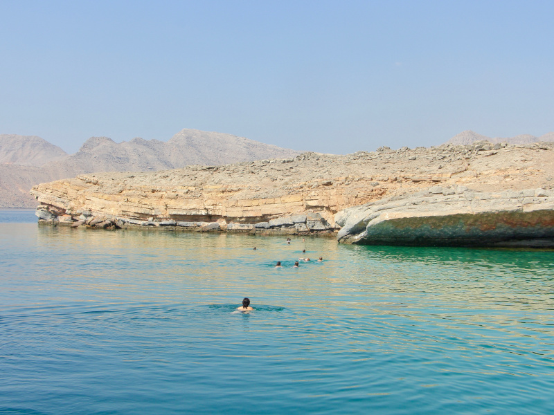 Aprovechará este crucero en Omán para bañarse y observar la fauna acuática con su máscara y su tuba. Y si el corazón se lo pide, también podrá pescar.