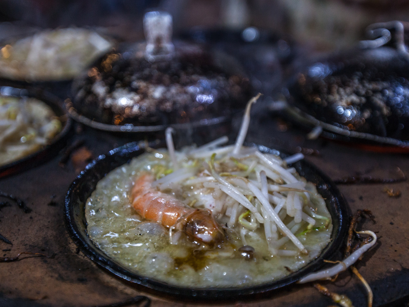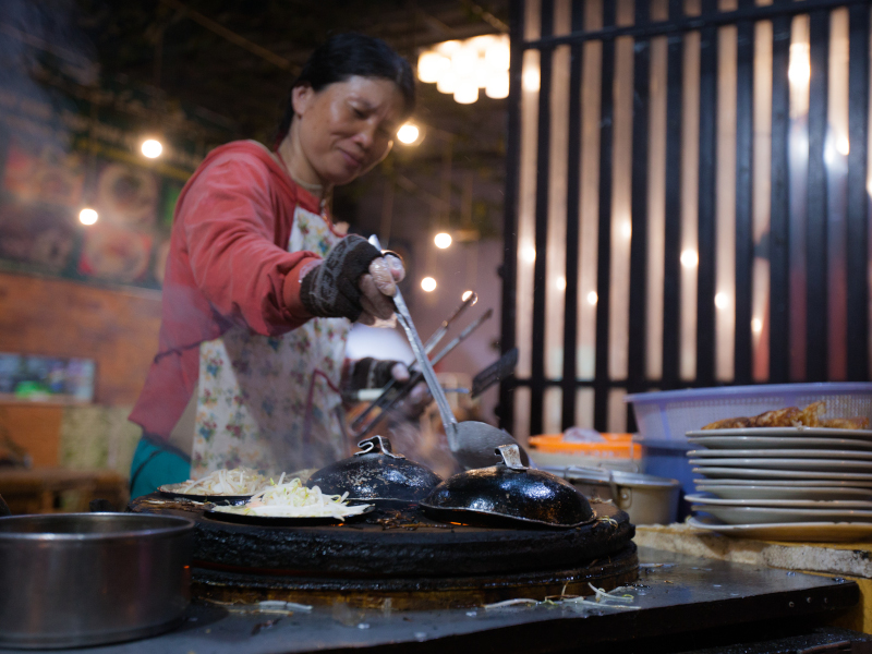 Después de unos 20 minutos, llegarán a una pequeña calle desconocida para los turistas y se detendrán para su primera degustación de la noche. Pero la experiencia no termina aquí: sus guías les contarán la historia de los platos que probarán, desde los panqueques locales a los diferentes tipos de fideos, y les mostrarán cómo comérselos correctamente. ¡Y no siempre es tan simple como parece!