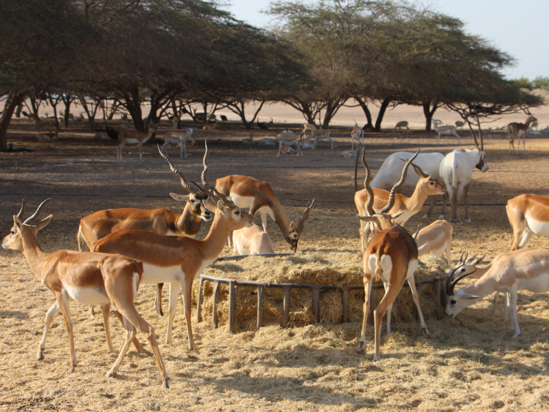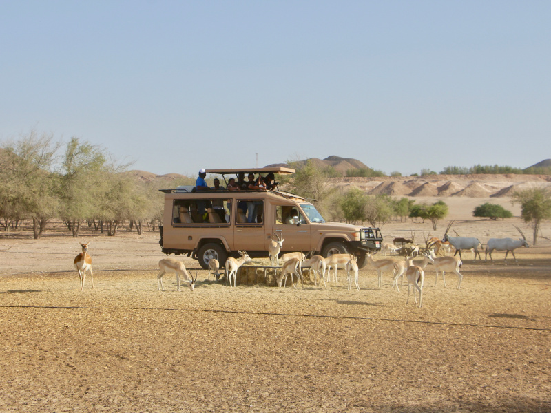 A primera hora de la mañana, partirá a la aventura para realizar un safari en 4X4 en el parque Arabian Wildlife, una de las mayores reservas naturales de Abu Dhabi y que posee más de 10.000 animales en libertad. Acompañados por un guía experimentado, podrá admirar los famosos oryx de Arabia, pero también jirafas, guepardos, avestruces, hienas o gacelas moviéndose en su entorno natural.