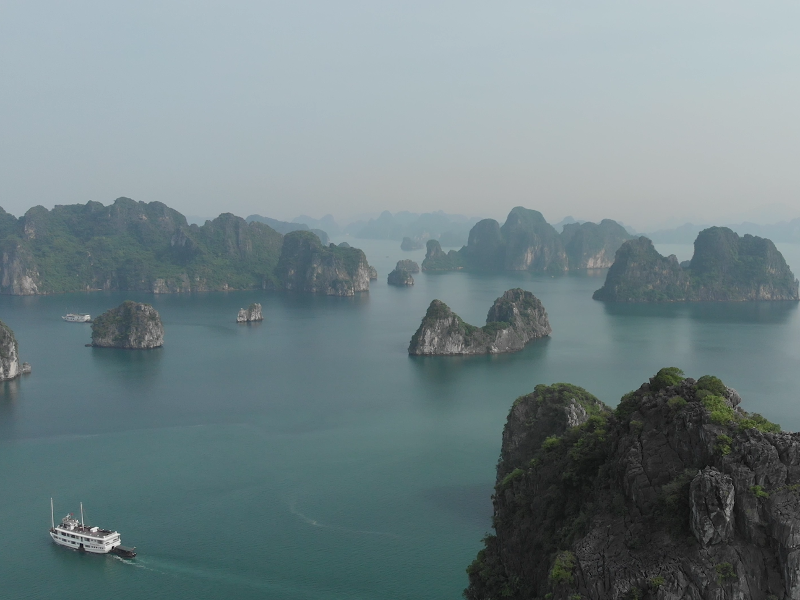 Después de un crucero de dos días por la bahía de Halong en Vietnam, ¡complete su experiencia tomando altura! Descubra este increíble panorama desde el cielo. ¿Quizás reconozca algunas de las islas que ha visto desde su junco o en kayak?