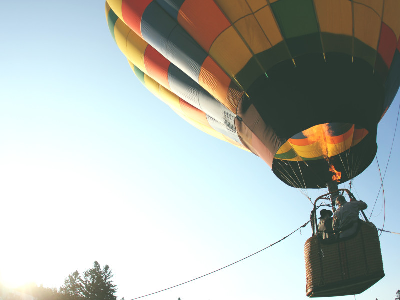 Poco antes de las 6:00 a.m., tomamos asiento en la cesta del globo, y el despegue es tan suave que nuestros miedos desaparecen al mismo tiempo que nuestro globo. Es hora de la emoción.